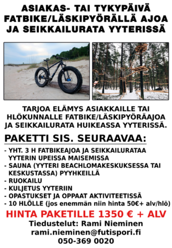 Futispori on järjestänyt useita onnistuneita yrityksen tykypäiviä. Pakettiin kuuluu kuljetukset, ruokailut, saunat ja oheisohjelma, mikä voi olla esim. keilausta, curlingia, melontaa, ammuntaa, frisbeegolfia, kuntoilua, autoilua, cartingajoa, petanqueta, paintballia, kalastusta ja jousiammunta ym. Tilaisuus toteutetaan asiakkaan toiveiden mukaan.